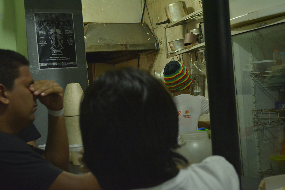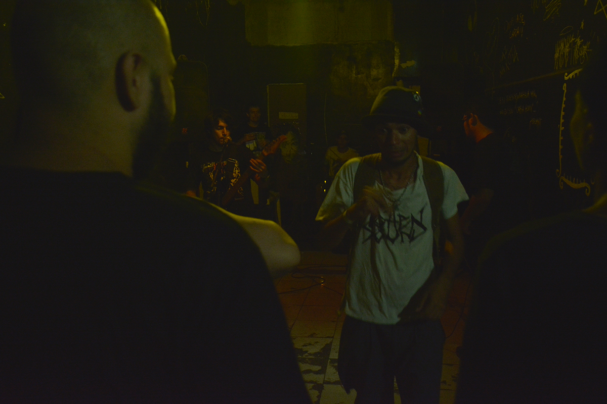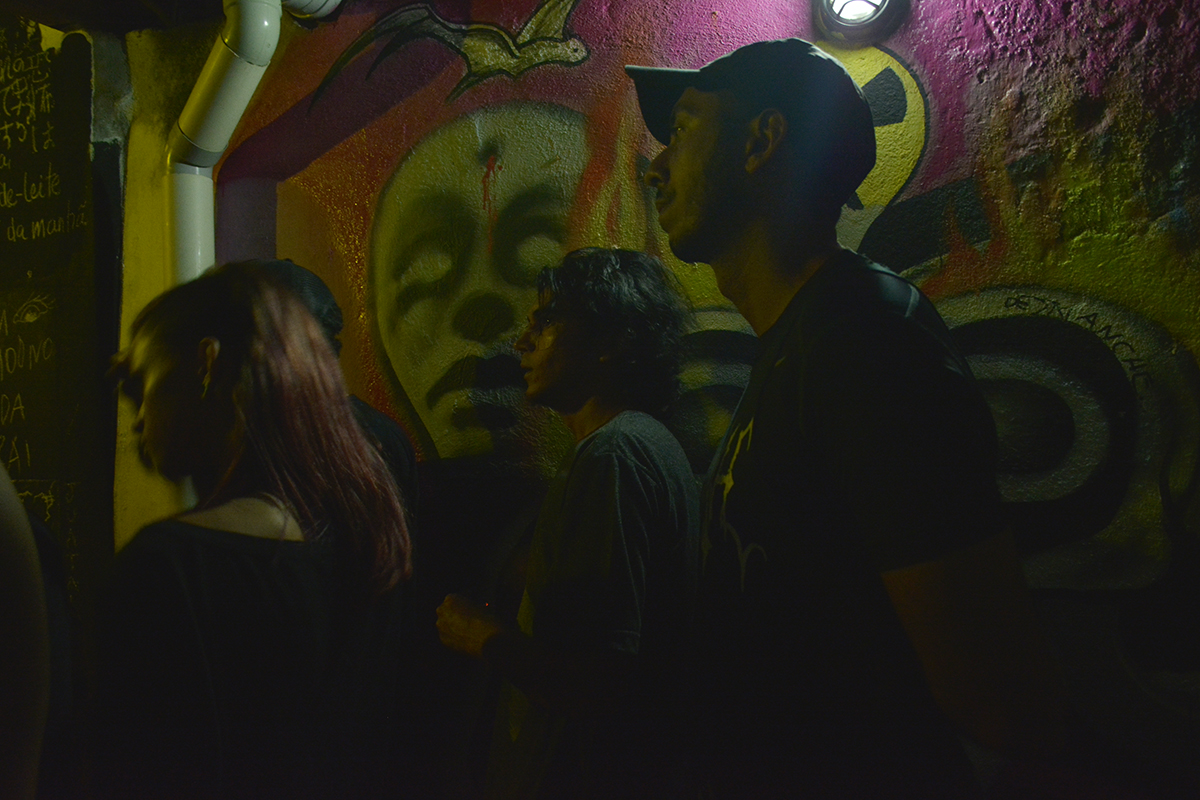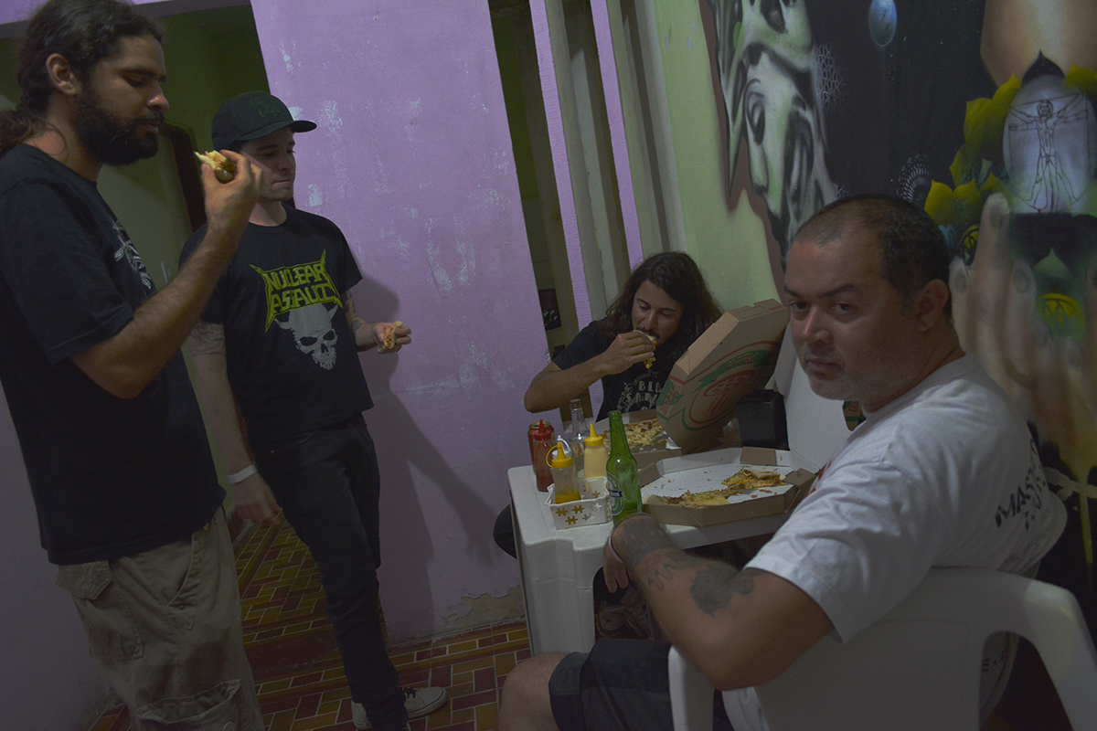 Não podemos terminar o texto falando de como era o show. A apresentação da banda acontecia no fundo da casa, um espaço minúsculo e escuro, mas que dava para fazer uma boa roda de polga, todos disputando para ver e ouvir a banda. A galera estava até animada, balançando muito a cabeça e tinha vários curiosos assim como eu, que estava fotografando todos os detalhes da pizzaria mais underground da cidade.