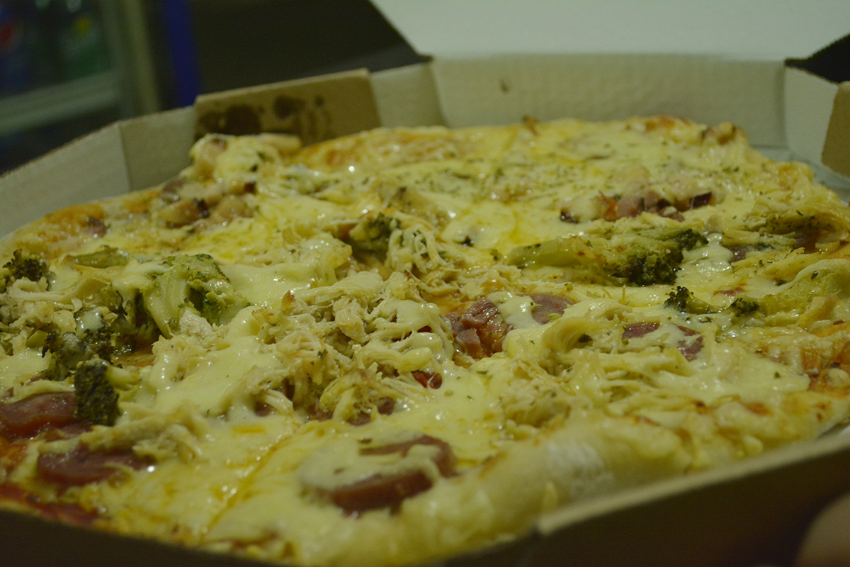 As pizzas são baratas e tem todos os tipos de sabores. A minha custou, em média, 25 reais. O catchup que oferecem é ótimo. Enquanto eu soltava um papo com dois rapazes, enquanto pedia guardanapos e molhos para colocar na minha pizza.