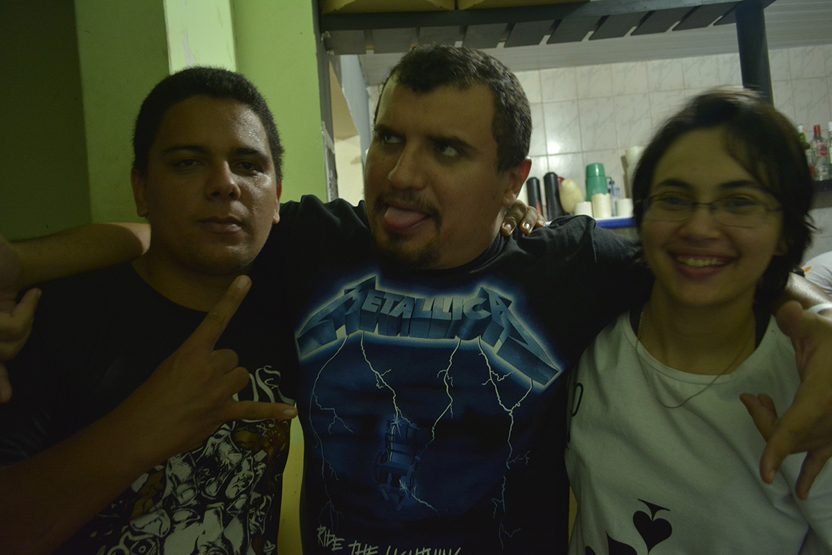 Quase todos vestidos de preto, com algumas modificações corporais (lê-se piercing, tatuagem e alguns alargadores) bebendo as suas cervejas na rua e escutando heavy metal. Eles estavam tranquilos, felizes e chacoalhando a cabeça ao som de uma banda recifense de metal extremo que estava saindo da Faster Pizza.