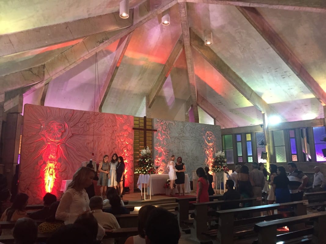 Sabia que a capela foi projetada pelo fundador do curso de Arquitetura? Sim, ela foi fundada por João Maurício Fernandes de Miranda e a intenção era reproduzir as formas da casa tradicional da Colônia Brasileira, com uma mudança de eixos que permitisse uma maior reverberação acústica. É por isso que dificilmente nós vemos uma cerimônia ser celebrada com microfones ou alto-falantes.