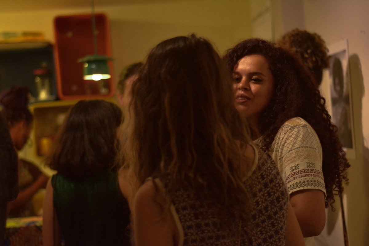 Podia encontrar facilmente comida. Mas, do outro lado tinha um brechó com vestidos bonitos custando 30 reais ou entrar dentro da casa para experimentar um pouquinho das comidas típicas e olhar uma exposição fotográfica maravilhosa, cuja intenção era mostrar o empoderamento negro. Na parte externa também tinha o espaço de venda para turbante, camisetas e joias. Tudo feito nas mãos de potiguares.