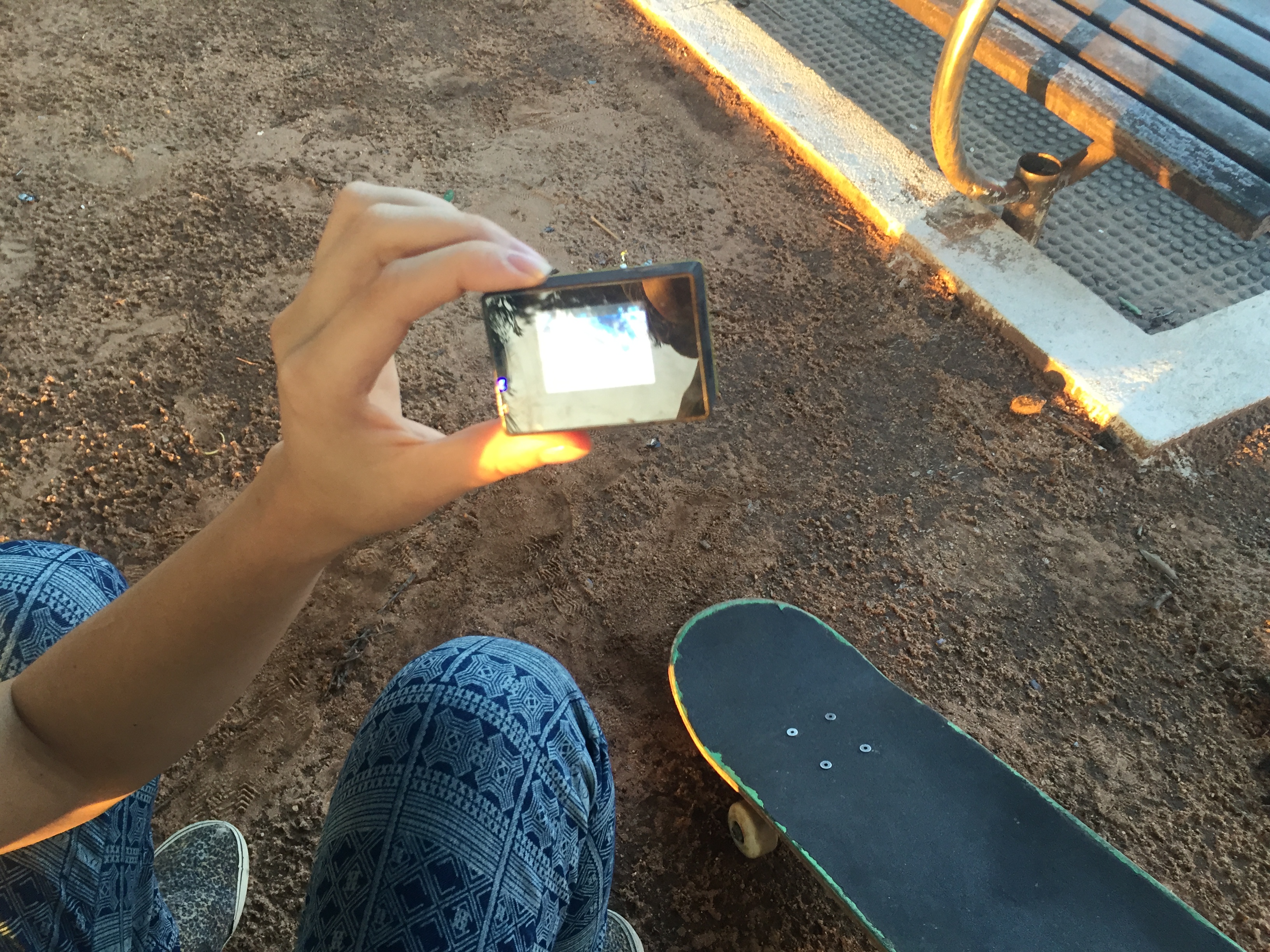 A jovem Raires Silveira é estudante de Odontologia e nas horas livres anda com usa longboard pela praça, que mora no bairro de Cidade Alta. “De vez em quando a faculdade é bastante estressante e andar de skate pode te ajudar a relaxar bastante”, afirmou a jovem.