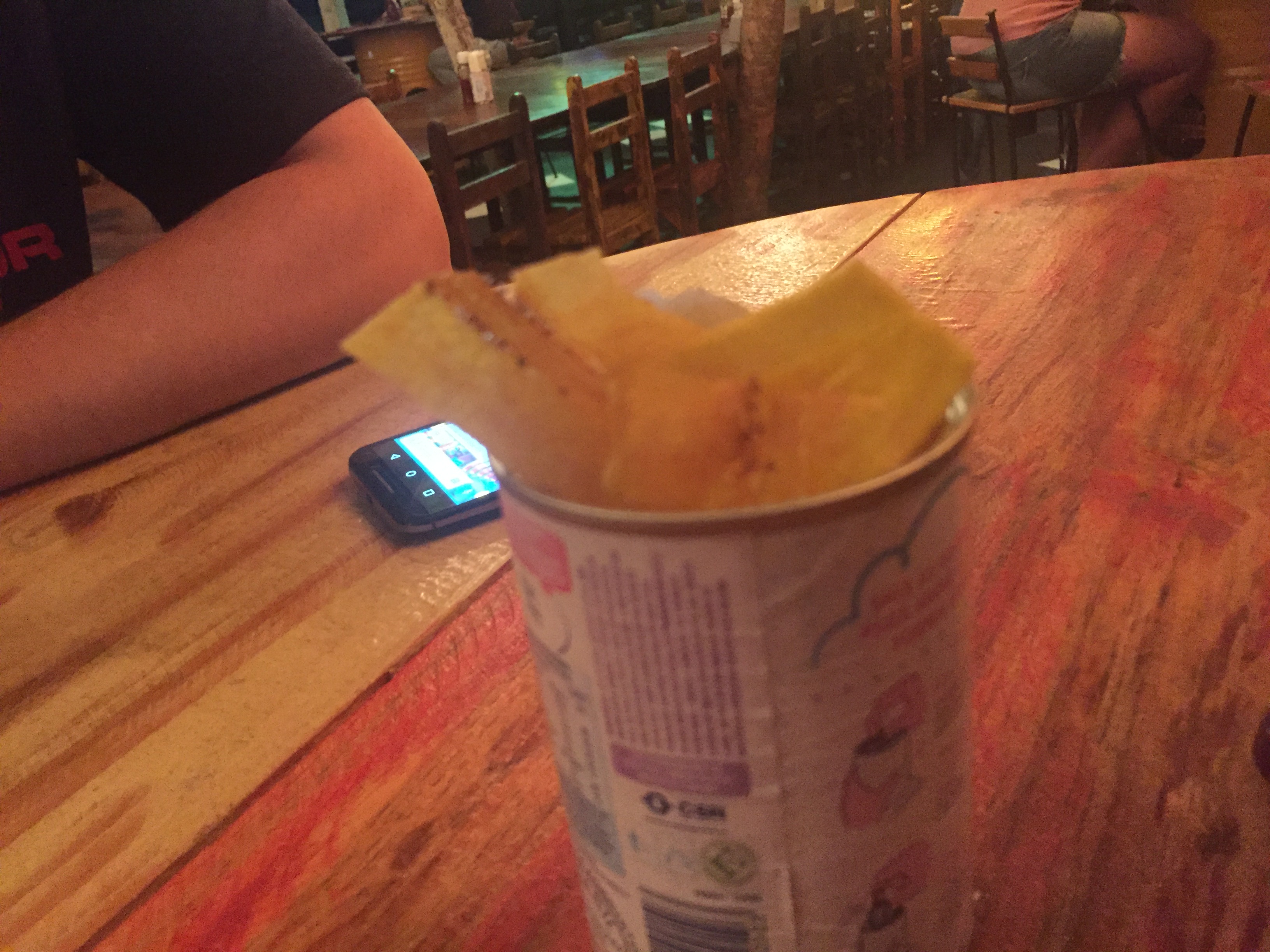 Esse chips de banana da terra da foto acima é muito bom. Detalhe: eu não gosto de banana. Tanto que eles dão essas delícias para os novos clientes experimentarem e quebrarem a cara. Lá tem opção de três fritas: bata-frita tradicional, chips de banana da terra e batata-doce.