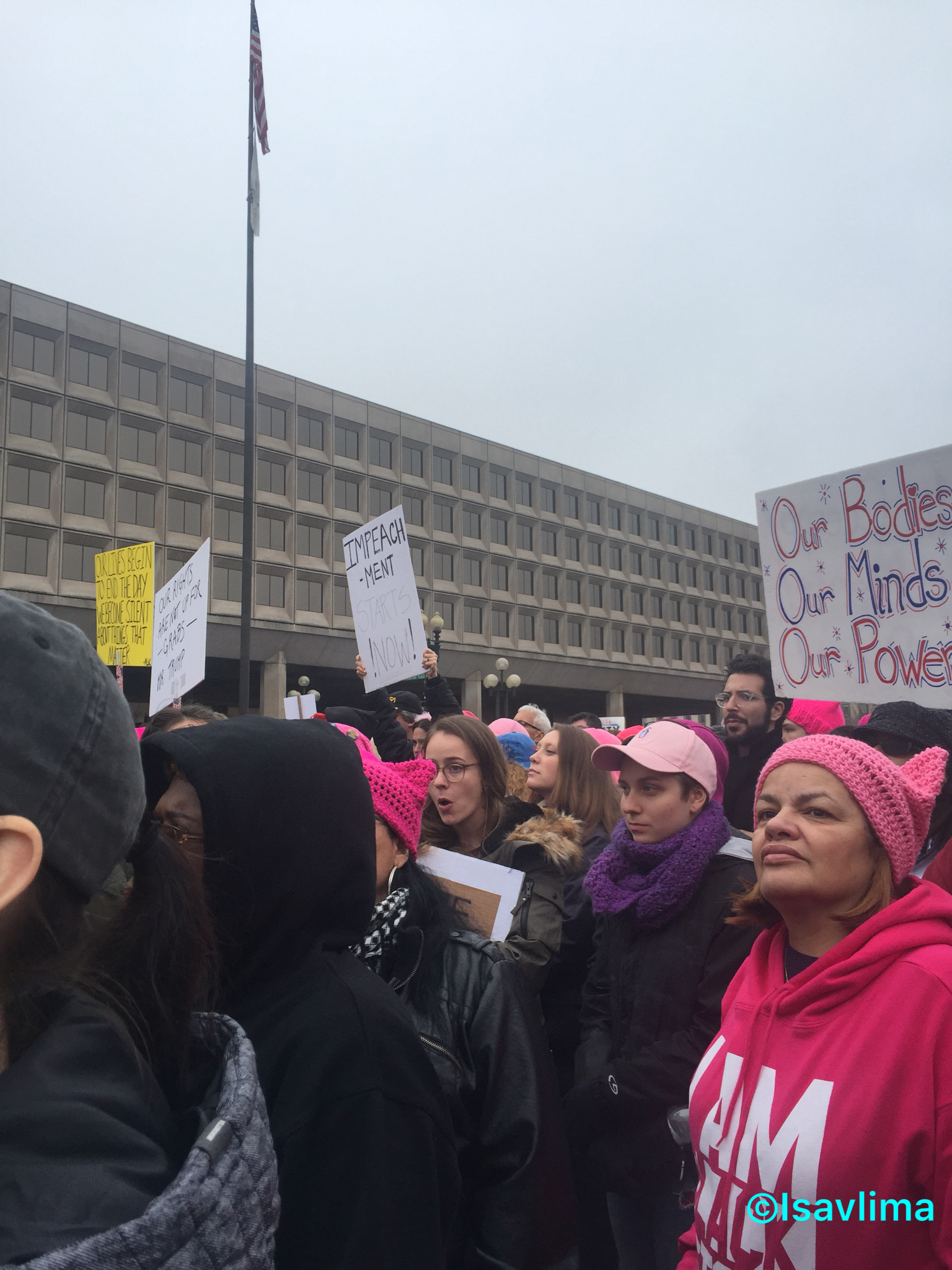 Cheguei casa pouco antes da marcha acabar, com um tornozelo e um joelho doloridos, mas feliz ter feito parte de um dia histórico de ver que não tive problemas por ser mulher e latina, com cara de latina. Conversei com grupos de Virgínia, Maryland, DC, Michigan e não fui discriminada pelo meu sotaque ou por ser estrangeira.