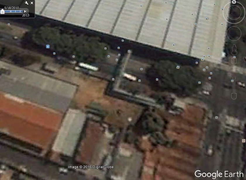 Analisando o Google Earth, mostrando a evolução da região mostra que este estacionamento abandonado pertence ao Midway, visto que a passarela onde fornece acesso ao shopping, ocupa parte deste terreno. Veja os prints a seguir: