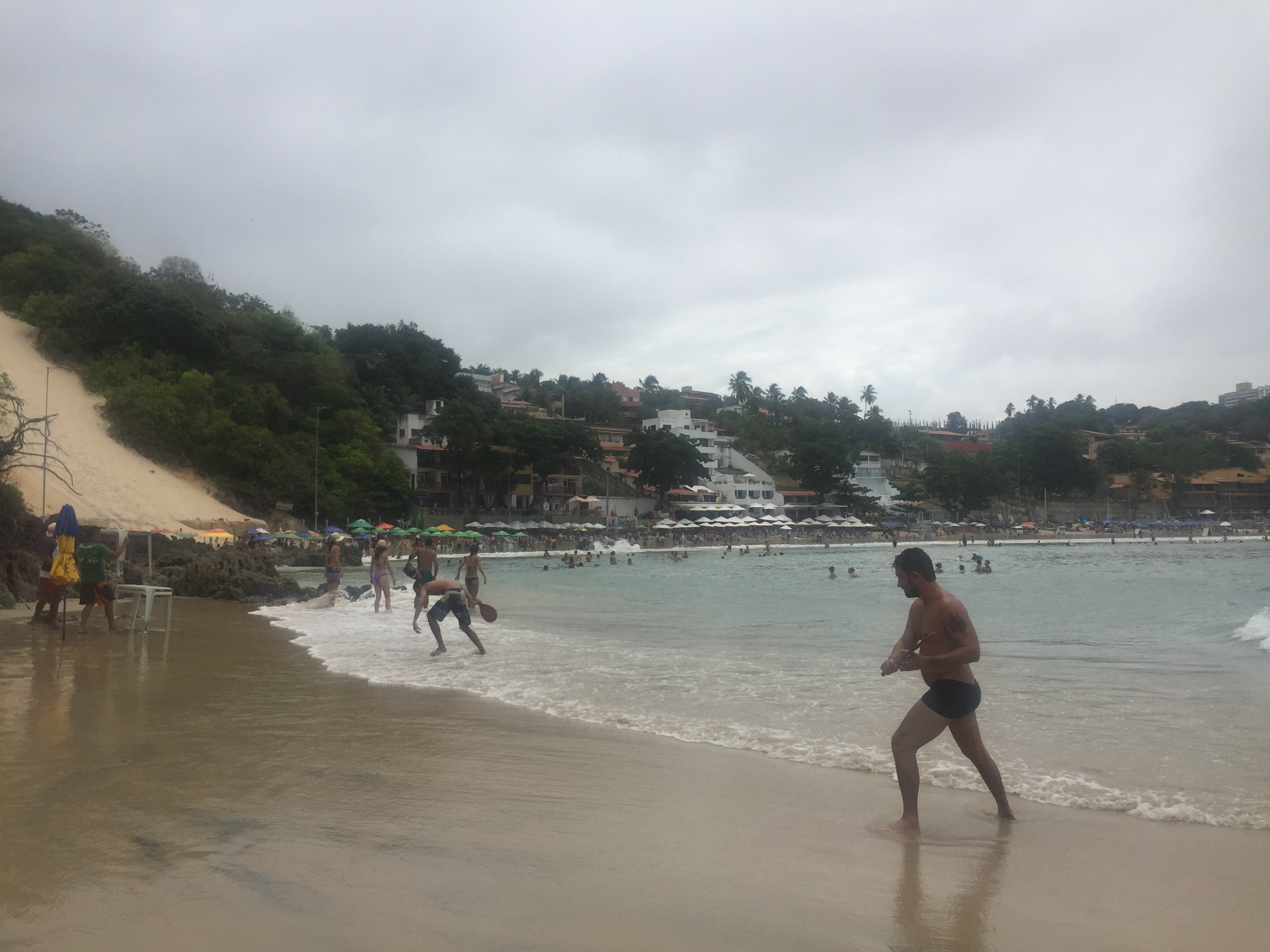 Do lado existe um paredão de rochas, que se junta com os resquícios da Mata Atlântica. É comum ver a mistura de árvores nativas, como cajueiro e cactos, se tocarem nas rochas. Lá, muitos natalenses sentam nos locais para ficar curtindo mar e fugir das barracas de praia que custam 10 reais para poder sentar ou possuem comidas muito caras. Aos pés do morro começa uma trilha pela formação do continente americano.