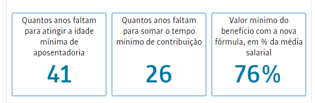 Aqui fiz o meu cálculo pelo site da Folha de S. Paulo (faça o seu também) para saber com quantos anos vou me aposentar. O resultado é esse: