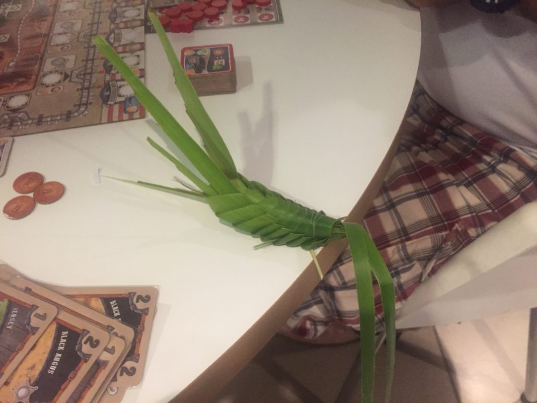 Alguns, mesmo desconfiados, toparam que ele mostrasse. Então, comecei a conversar com ele enquanto fazia o gafanhoto com folhas de coqueiros. “Estou nisso há quatro anos, eu comecei com 16 anos por causa do meu vizinho. Hoje, tenho 19, você acredita que eu tenho 19 anos? Me dá essa idade?”, dizia o artesão.