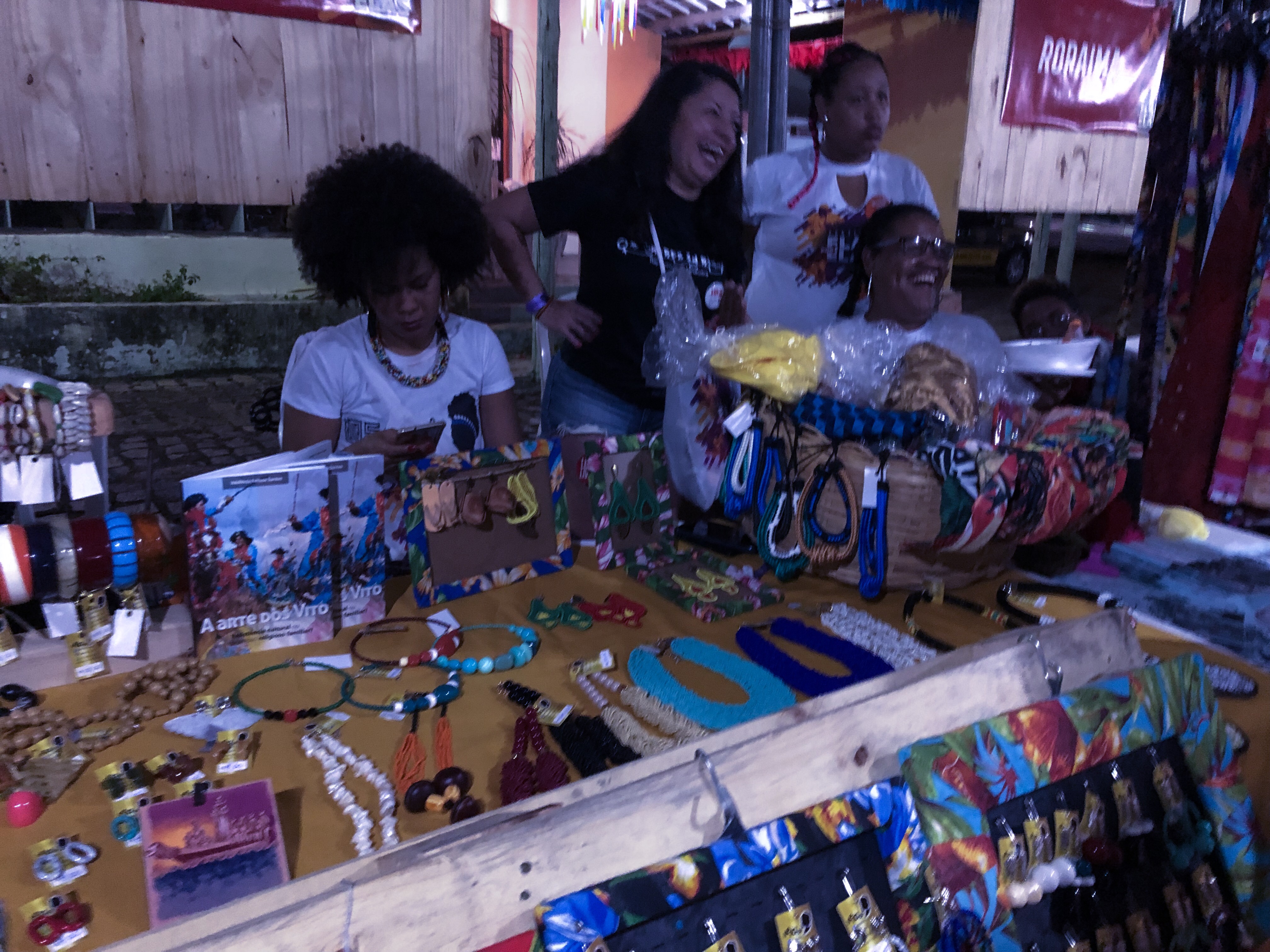 Não cheguei a tempo para ver as palestras, cheguei por volta das 22 horas, mas consegui fotografar algumas participações no circo, mas estava empolgada mesmo com o artesanato, tinha umas bijouterias maravilhosas e uns lindos brincos feitos de capim dourado. Para quem era vegano, ainda tinha um hambúrguer sendo vendido por umas senhoras do Rio de Janeiro. Para ser sincera, honestamente, estávamos empolgadas com o Corote que estava a venda por seis reais do ambulante e aceitava cartão de crédito.