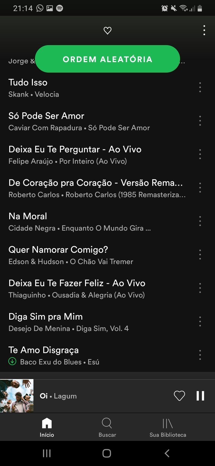 Já pediu em namoro montando uma playlist no Spotify? A quarentena é um período cheio de mudanças no roteiro. A noite de domingo (29) é uma prova disso e vou contar a história a seguir. A Patrícia é de Natal e no Twitter mostrou como pedir aquele crush em namoro de uma forma diferente. Como? Montando uma playlist no aplicativo de música, mas não apenas com a trilha sonora que embala o casal, uma vez que cada música mostrava uma mensagem que ela queria dizer até chegar na seguinte palavra: Quer namorar comigo? A surpresinha já tem mais de 200 compartilhamentos apenas do Tweet que ela mostrou essa peripécia e alguns retweets. Acredito que muita gente vai se inspirar nessa presepada romântica natalense. Aqui vão as fotos da playlist com as músicas selecionadas pela apaixonada: