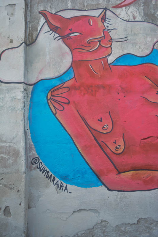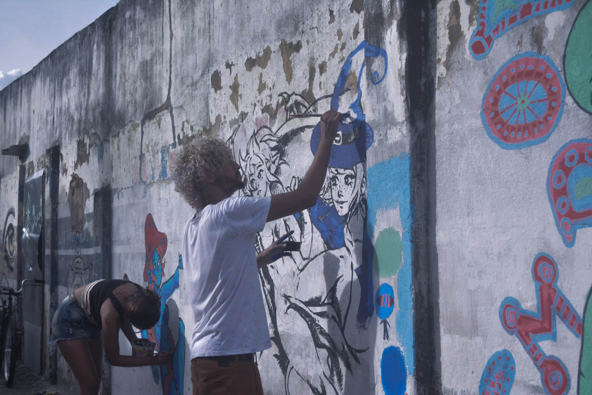 Ao sair das nossas casas depois da quarentena devemos aproveitar os espaços urbanos para deixar colorido. Uma semana antes do período de isolamento, a artista Sunsara, que mora em Macaíba, resolveu reaproveitar um beco abandonado no centro da cidade, no qual a prefeitura chama de Travessa Santo Antônio. Lá, ela junto com a equipe Arte & Solidariedade fez um mutirão de Graffiti, onde eles deixaram colorido o então conhecido Beco do Mijo, que o nome deixa bem claro o porquê que as pessoas o chamam assim, porque as pessoas utilizam esse espaço para urinar e jogar os seus lixos. Além de deixar o muro colorido e com menos cheiro de ácido úrico, eles estavam fazendo campanha para estimular a adoção de animais abandonados, além de angariar rações para os abrigos. “O movimento em Macaíba é coletivo e isso é muito bom, porque a galera realmente ajuda”, comentou a artista suja de tinta, mas animada com o que estava fazendo.