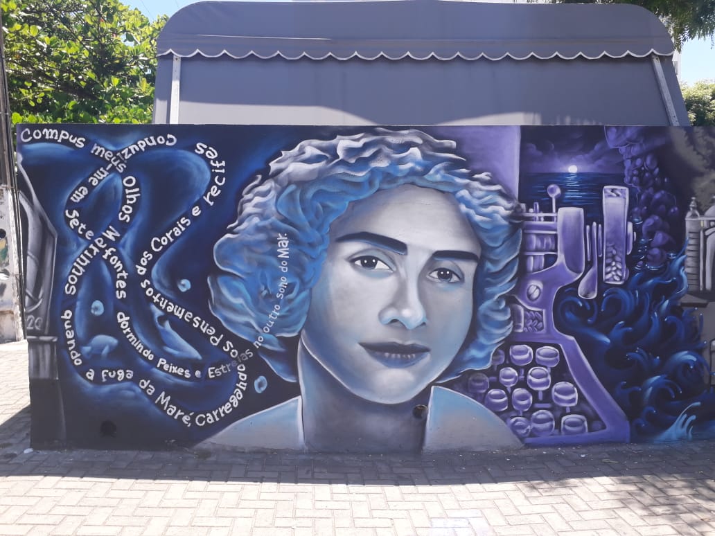 “Eu montei pensando em sua vivência de Zila Mamede, no qual ela não conhecia o mar e fez vários poemas imaginando como seria. Além disso, eu também assisti alguns vídeos e documentários sobre a sua biografia, no qual falava com um sentimento tão forte sobre o mar, a curiosidade de ver e sua fascinação pela primeira vez. Tragicamente, ela morreu afogada no rio Potengi, no qual fiquei filosofando que sua vida era toda ligada à isso. Por isso, eu adicionei bastantes tons de azul no muro”, relatou o artista em entrevista ao Brechando.