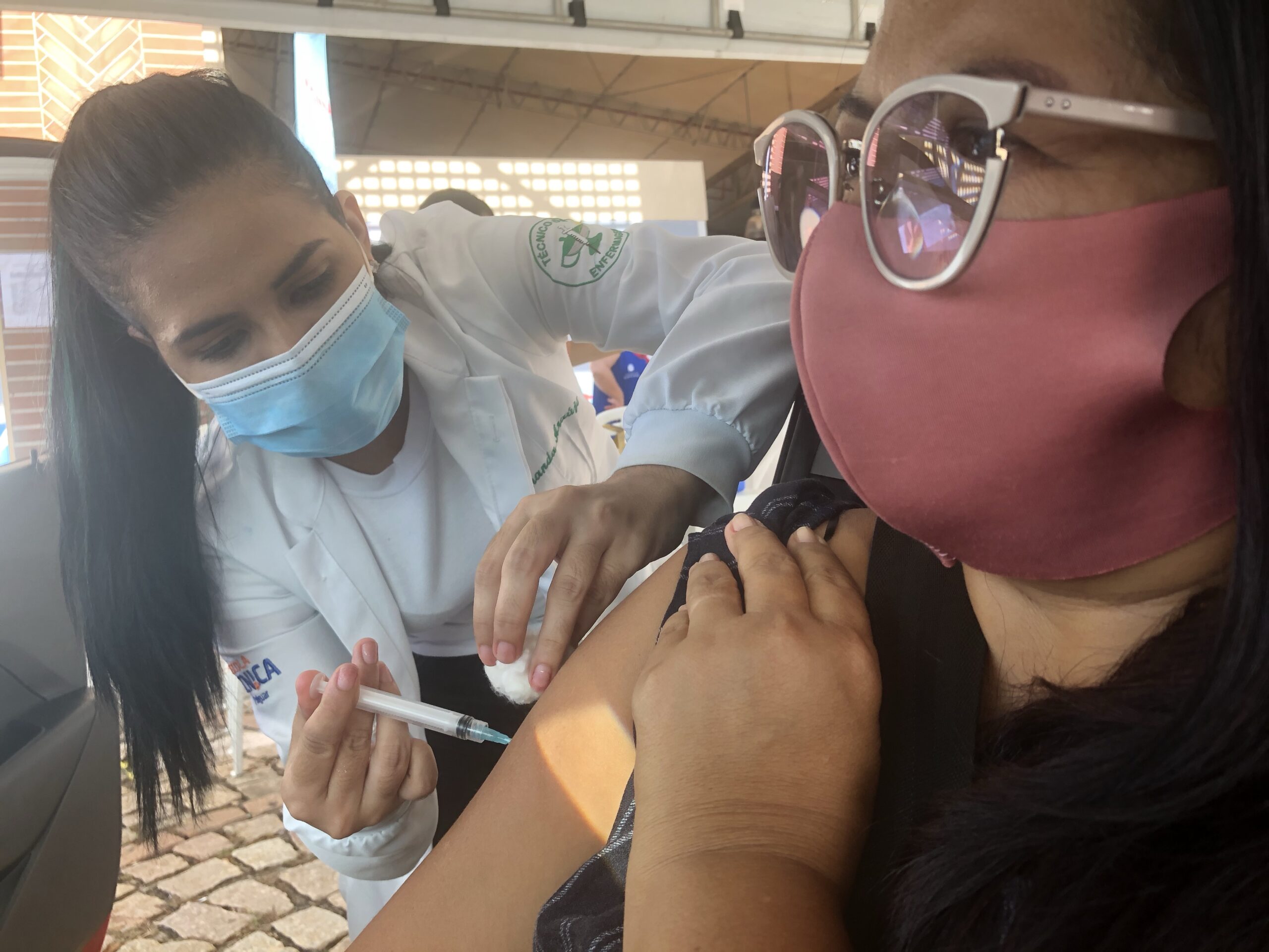 Depois, pediram para ir numa tenda mais a frente, onde estavam os profissionais que iriam furar. “Será que vão avisar se é a vacina chinesa?”, perguntou a minha. Respondi que provavelmente seria, porque na época a Oxford ainda não tinha chegado.