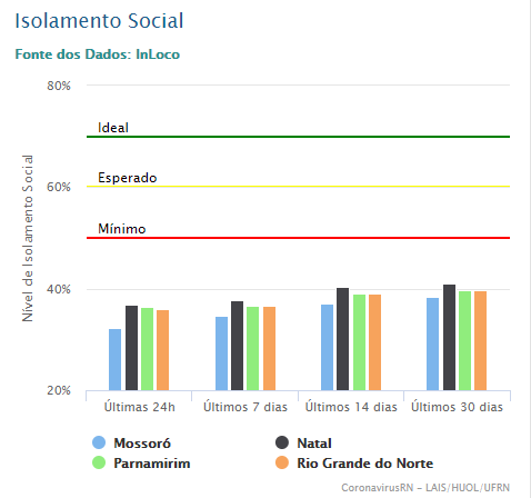 A seguir, portanto, está um gráfico mostrando como está o isolamento social. Além disso, mostra está muito aquém do esperado pela Organização Mundial de Saúde (OMS).