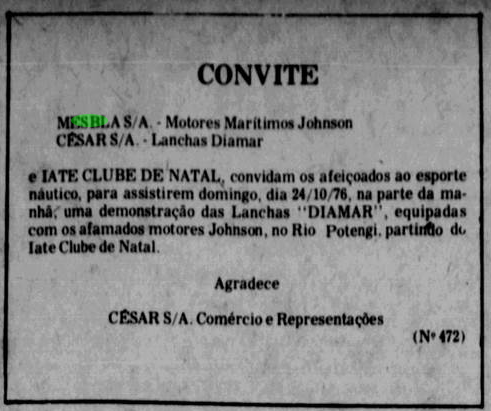 2) Nesta época, no entanto, era muito comum os jornais divulgarem anúncios de produtos da magazine e a elite de Natal comprava os produtos em Recife. Sem contar que era normal funcionários virem à Natal para comprar lanchas no Iate Clube.