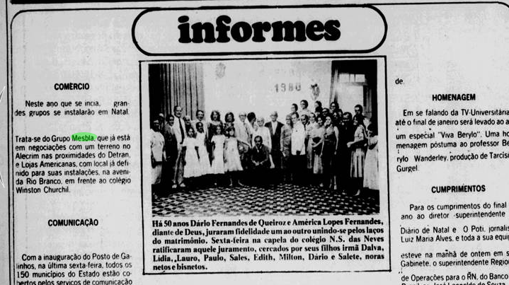 1) Na década de 70, a Mesbla tinha lojas apenas em Pernambuco e Ceará no Nordeste. Mas, isso não queria dizer que não havia interesse por Natal.