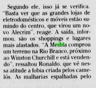 5) Nos anos 80, o centro de Natal passava por um boom de lojas de departamento, como a Riachelo e Lojas Americanas, que colocou a loja próxima do terreno que seria o Mesbla, no qual também planejara construir uma loja no Alecrim.