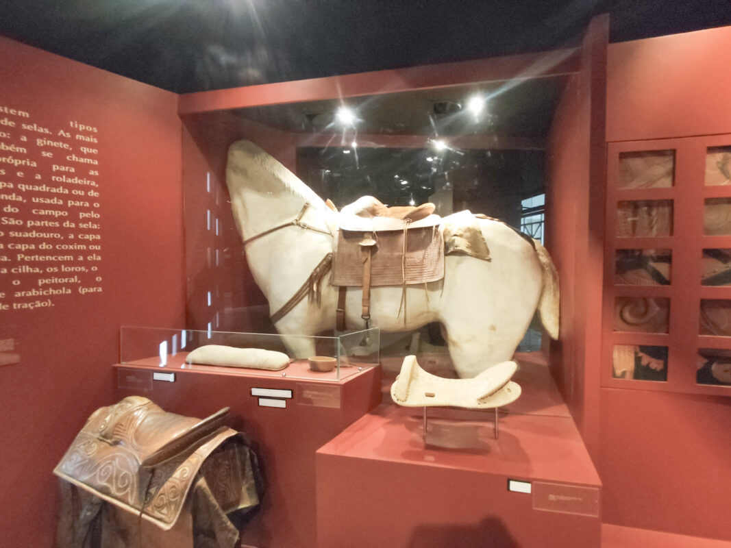 Também fomos assistir exposições, que são gratuitas. Lá, vimos a exposição fixa Vaqueiros, que está há mais de 20 anos em cartaz e conta um pouco mais da história desta profissão.