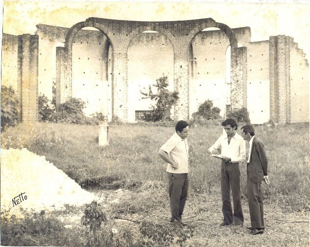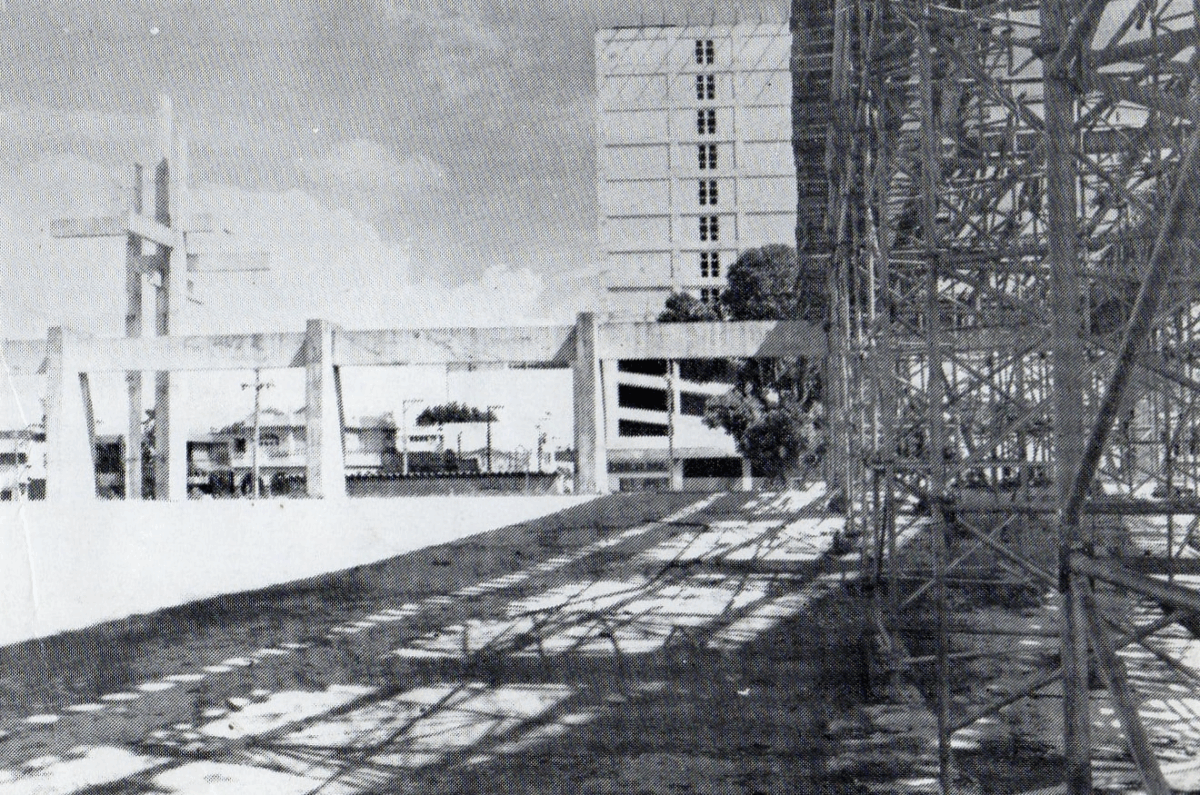 Em 2020, o Brechando já havia encontrado uma outra imagem da Catedral em obra. A fotografia acima mostra a nova Igreja Matriz ainda em obras, com o altar já levantado e tem a presença de Marconi Grevi quem projetou o templo (com a prancheta na mão) e Dom Nivaldo Monte observando todos os detalhes.