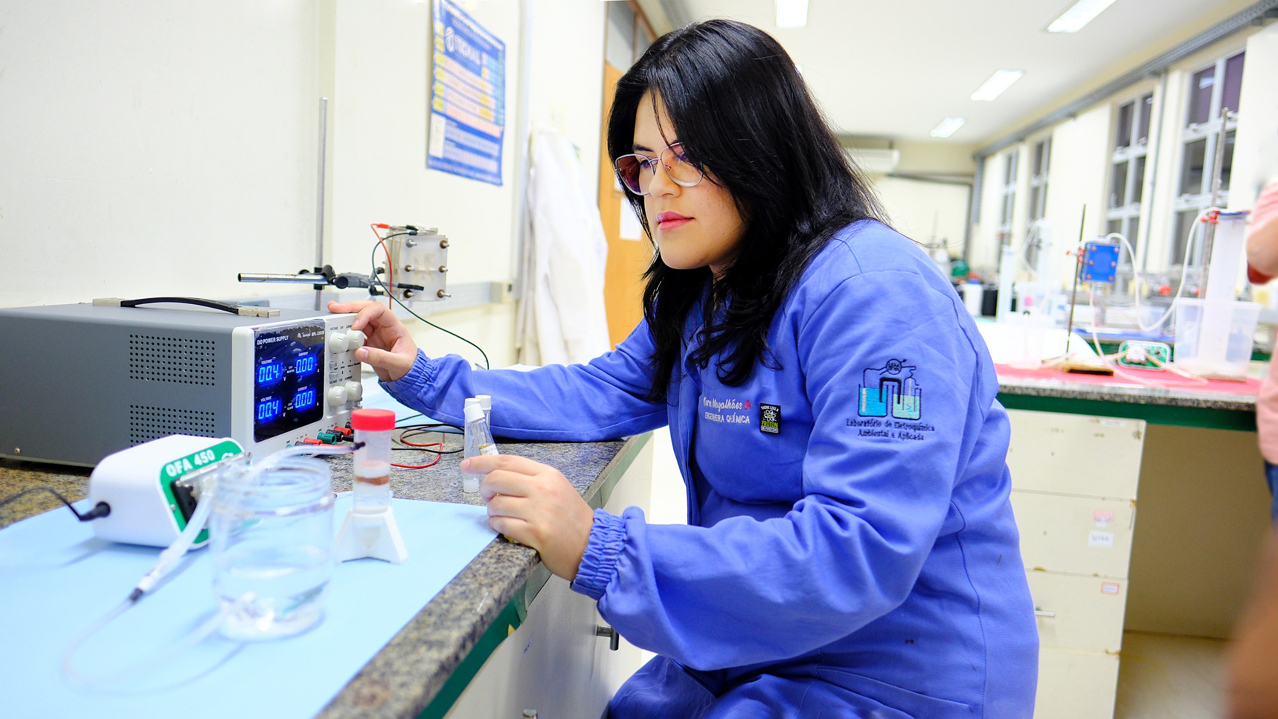 A pesquisa é desenvolvida no Laboratório de Eletroquímica Ambiental e Aplicada, fazendo parte de uma dissertação de mestrado em Engenharia Química, vinculada também ao programa de pós-graduação em Química.