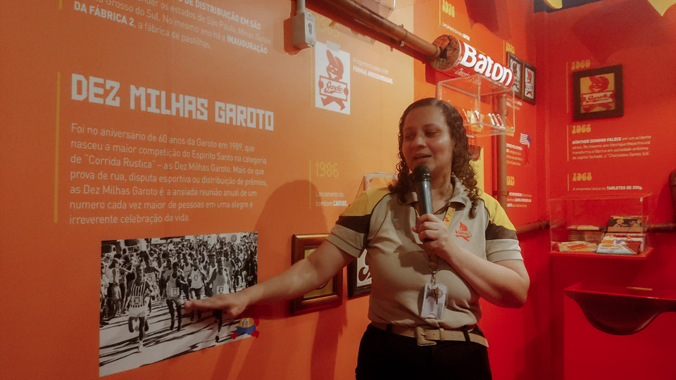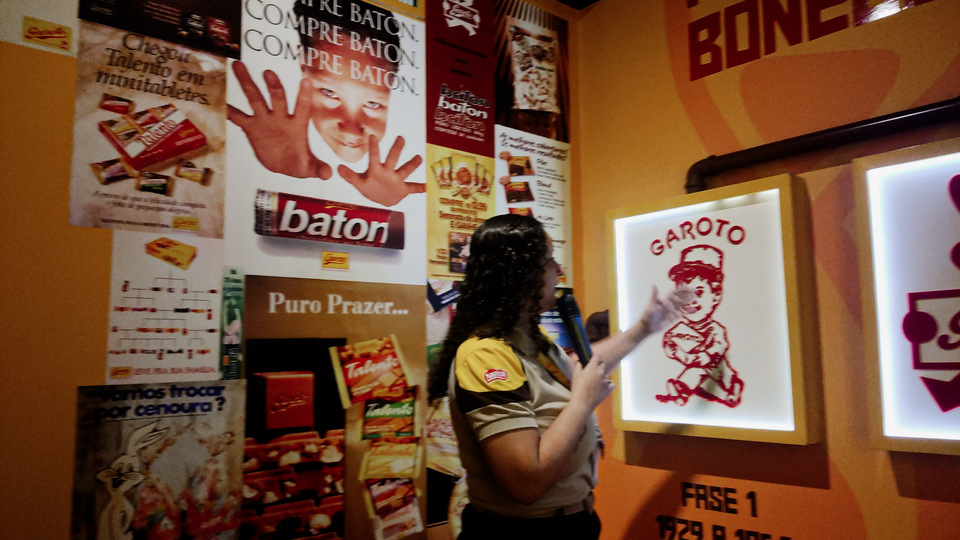 Rapidamente, encaminhamos para a sala que conta a história da Garoto. A história da Chocolates Garoto começa em 1929, em Vila Velha (ES), com o imigrante alemão Henrique Meyerfreund, que fundou uma fábrica de balas. Os vendedores, garotos que transportavam as balas em tabuleiros, foram apelidados de “garotos”, e esse apelido virou o nome da empresa em 1934, que também lançou sua primeira pastilha de hortelã, que existe até hoje.