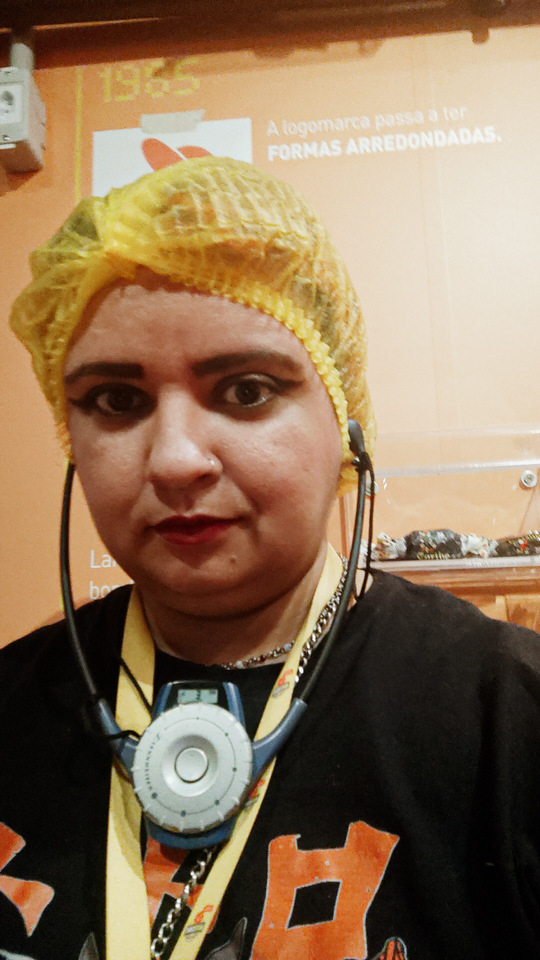 Quando acontece a visita, uma pessoa lhe chama e a mesma fornece equipamentos de segurança, como touca e fones de ouvido para podermos ser autorizados a adentrar a fábrica.