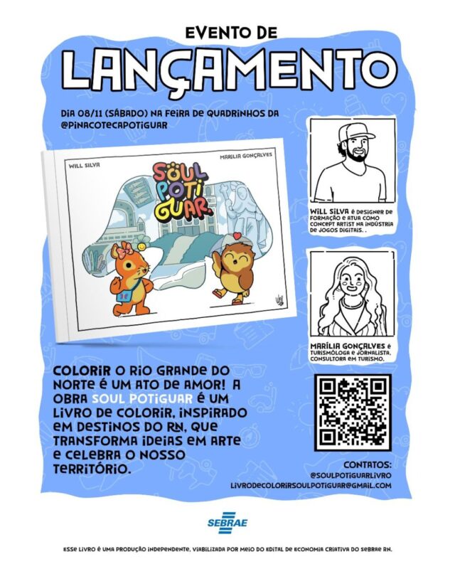 A Feira de Quadrinhos da Pinacoteca acontece uma vez por mês e reúne os principais quadrinistas da cidade. Mas, no próximo sábado (8), haverá o lançamento do livro de colorir “Soul Potiguar”.