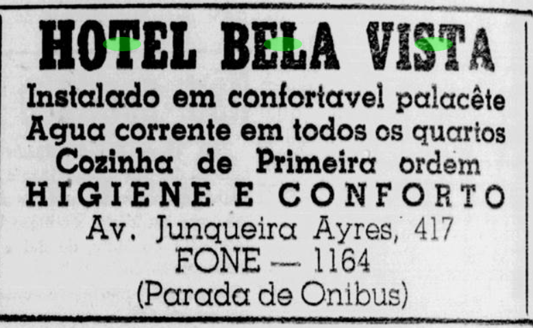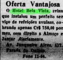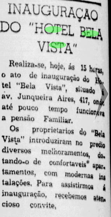 Em 1944, Sinval Duarte Pereira, comprou a casa, deu-lhe o nome com que ficaria conhecido até os dias de hoje, ao inaugurar o Hotel Bela Vista. Confira o trecho do jornal “A Ordem” logo abaixo: