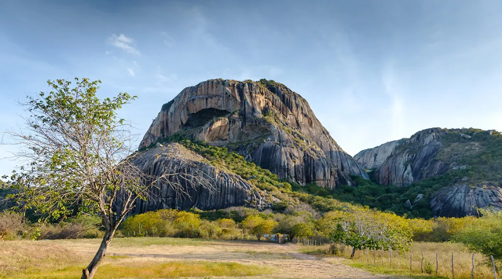 Fica na cidade de Araruna, dentro do Parque Estadual Pedra da Boca, e basta chegar mais perto para entender por que o lugar virou lenda.