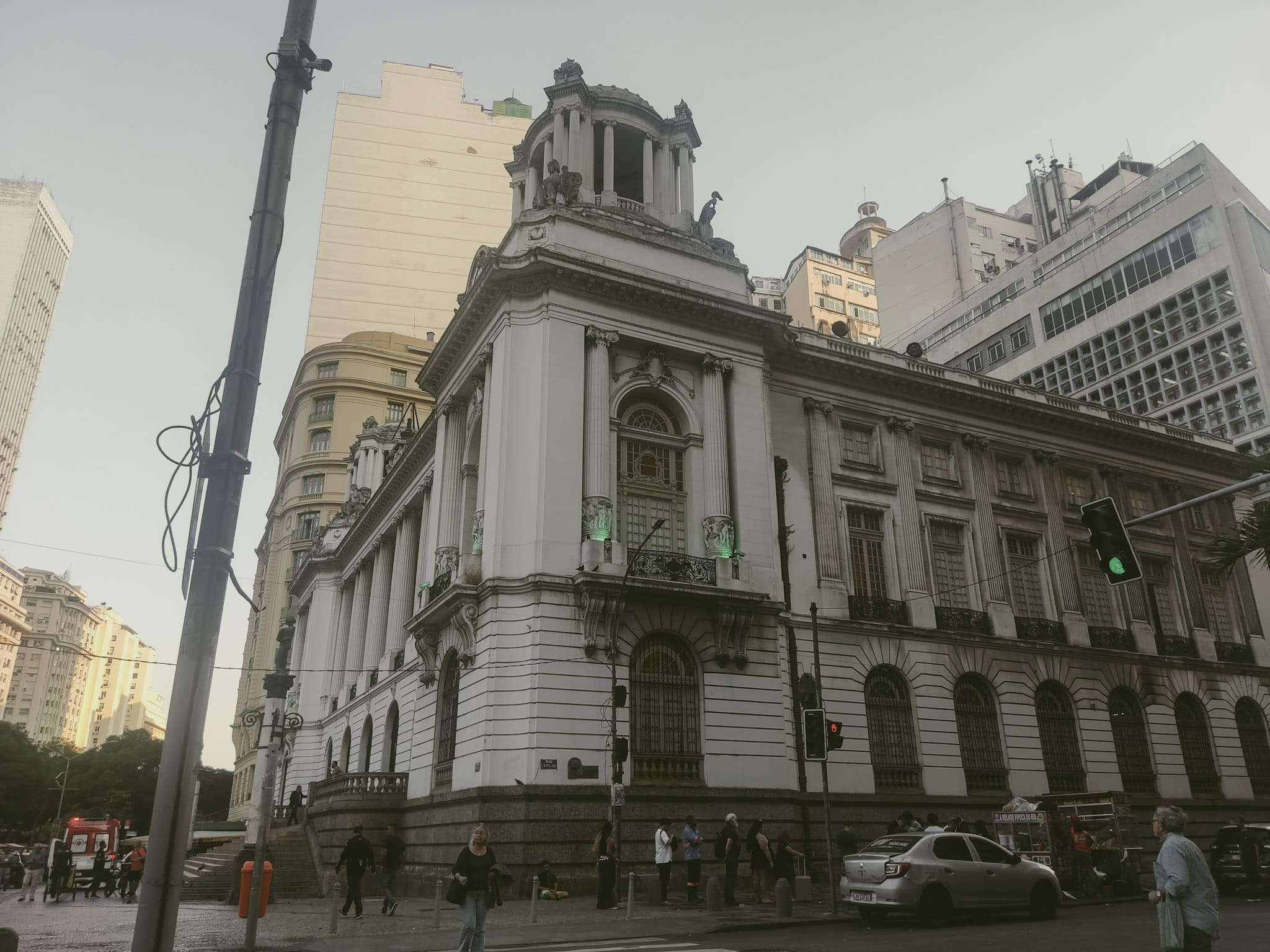 Do outro lado dos arcos, nos lançamos em uma caminhada pelo centro da cidade. O roteiro incluiu o grandão Teatro Municipal, cuja arquitetura é inspirada na Ópera de Paris, e o Convento de Santo Antônio, que guarda séculos de história religiosa e cultural. Também passamos pelo Largo da Carioca, uma área que tem muitos comerciantes, artistas de rua e pessoas apressadas que circulam entre o metrô e as avenidas.