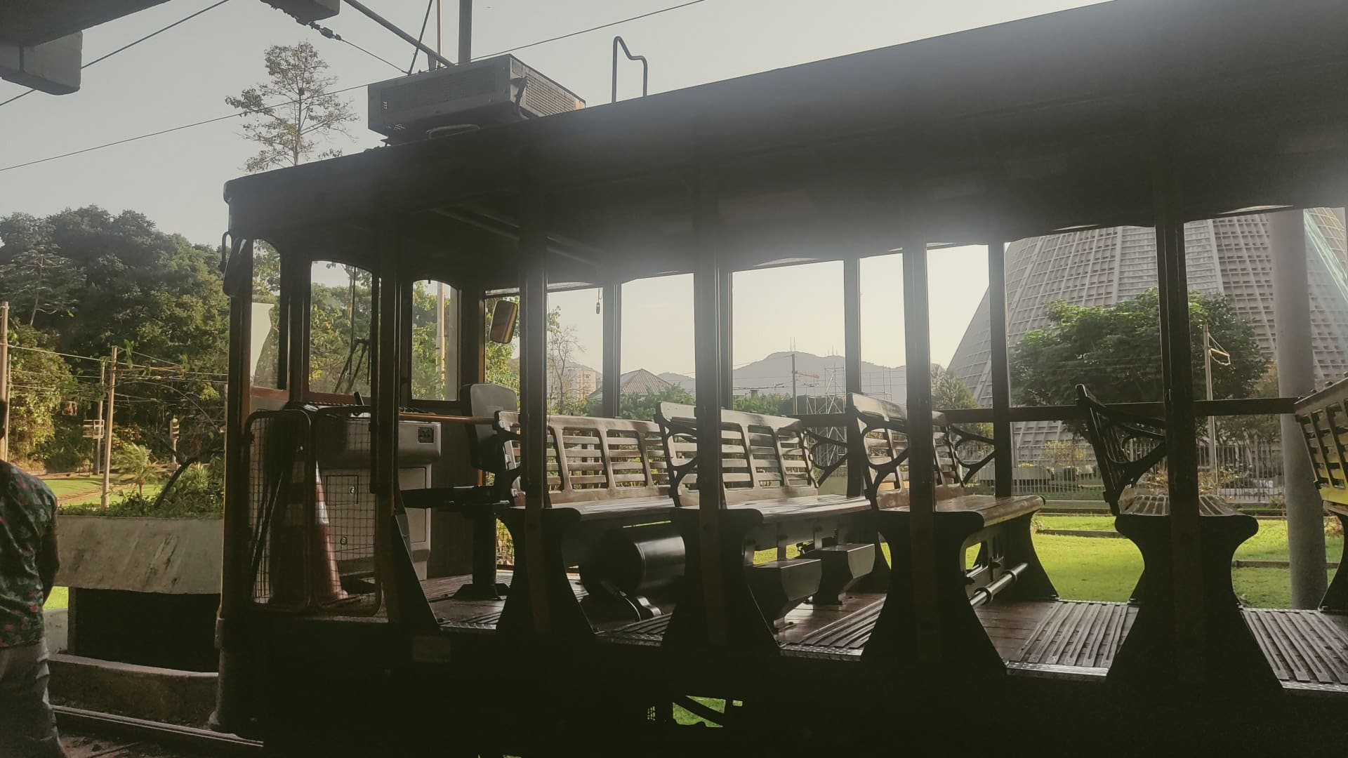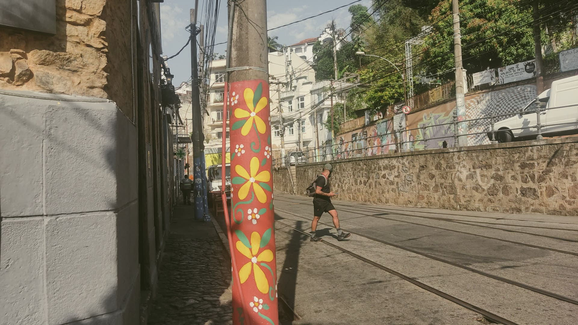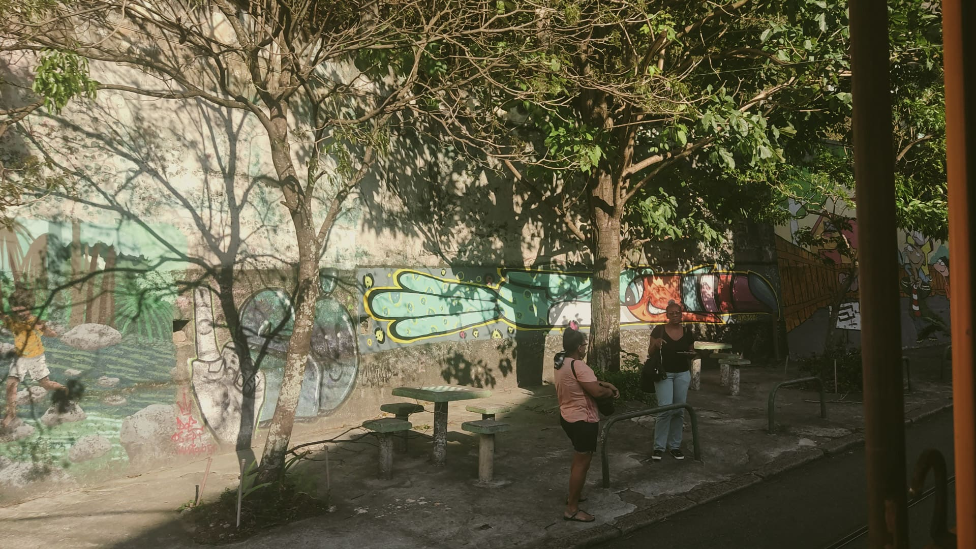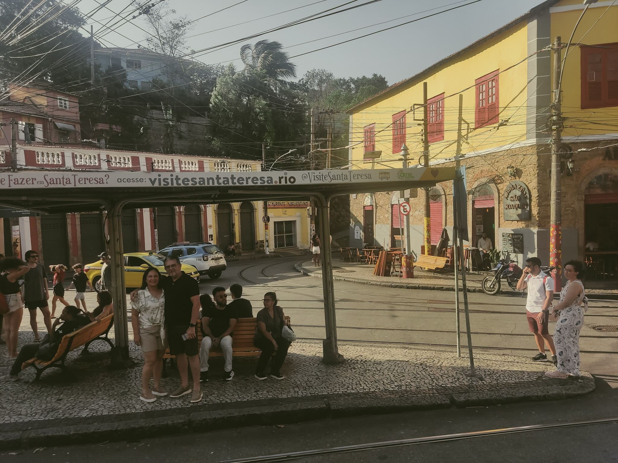 Em seguida, embarcamos no famoso bonde de Santa Teresa, que serpenteia pelas ruas estreitas e oferece uma experiência que mistura nostalgia e encanto. O trajeto foi ainda mais especial ao atravessar os Arcos da Lapa, monumento histórico que liga dois dos bairros mais conhecidos do Rio.